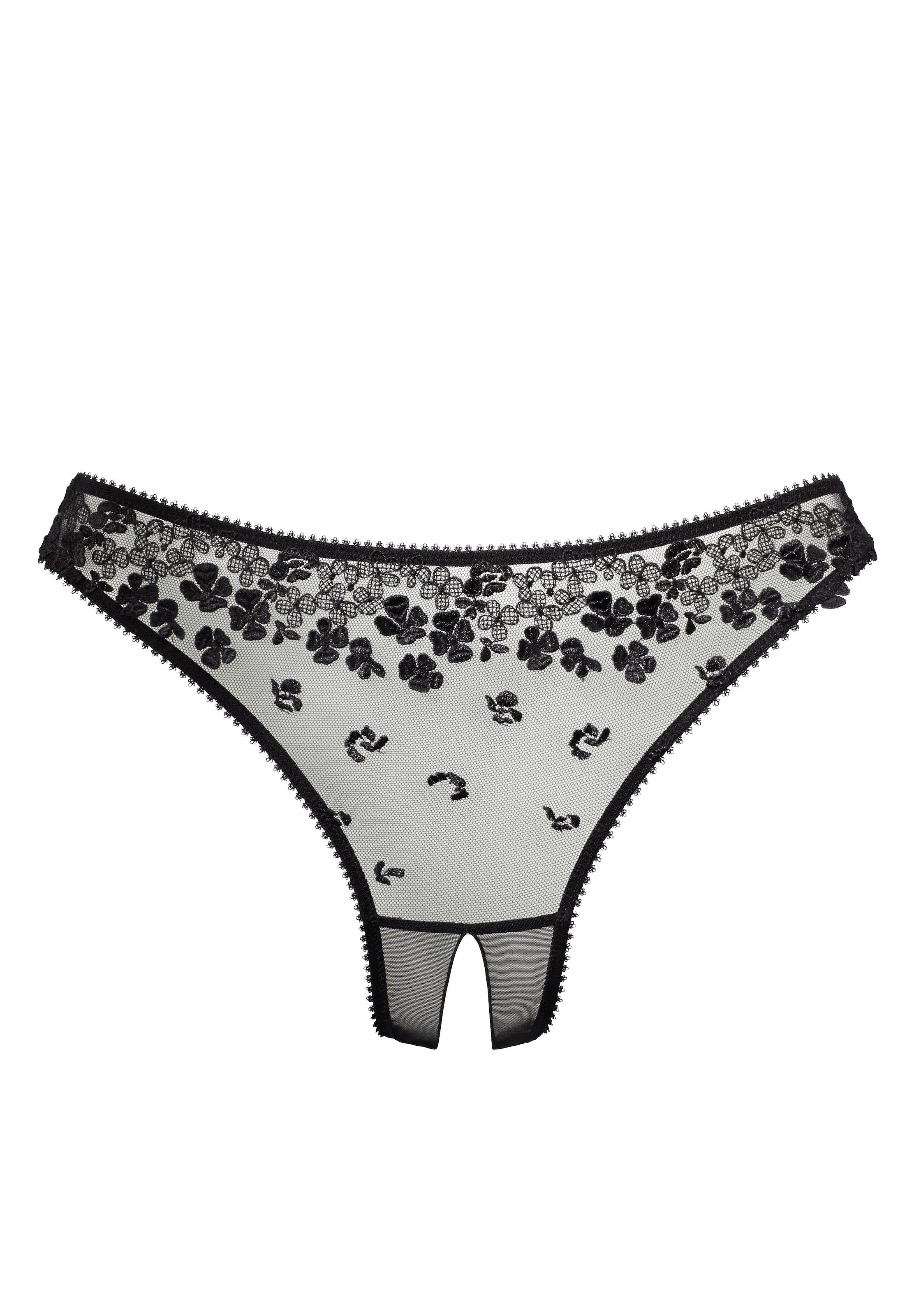 LASCANA: String ouvert aus extravaganter Stickereispitze im 3D-Look mit aufgesetzten Blüten. Leicht transparent. Aus 67% Polyamid, 21% Polyester, 12% Elasthan.
