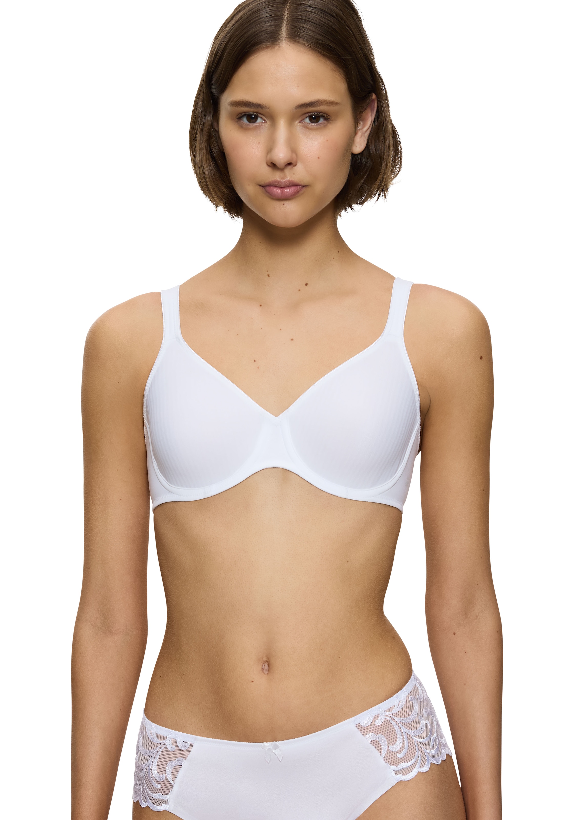 Bügel-BH "Modern Soft Cotton W" von Triumph. Ideal auch als T-Shirt-BH zu tragen. Mit dezentem Glanz-Streifenmuster. Breitere Träger entlasten die Schultern ohne einzuschneiden. Träger und Rückenverschluss verstellbar. Klassische Dessous. Bequeme Alltags-Dessous. Modische Dessous. Der BH ist aus 43% Baumwolle, 35% Polyamid, 22% Elasthan (LYCRA®). BHs sind nicht trocknergeeignet, da die Versteller und Ringe durch die Hitze beschädigt werden und brechen .