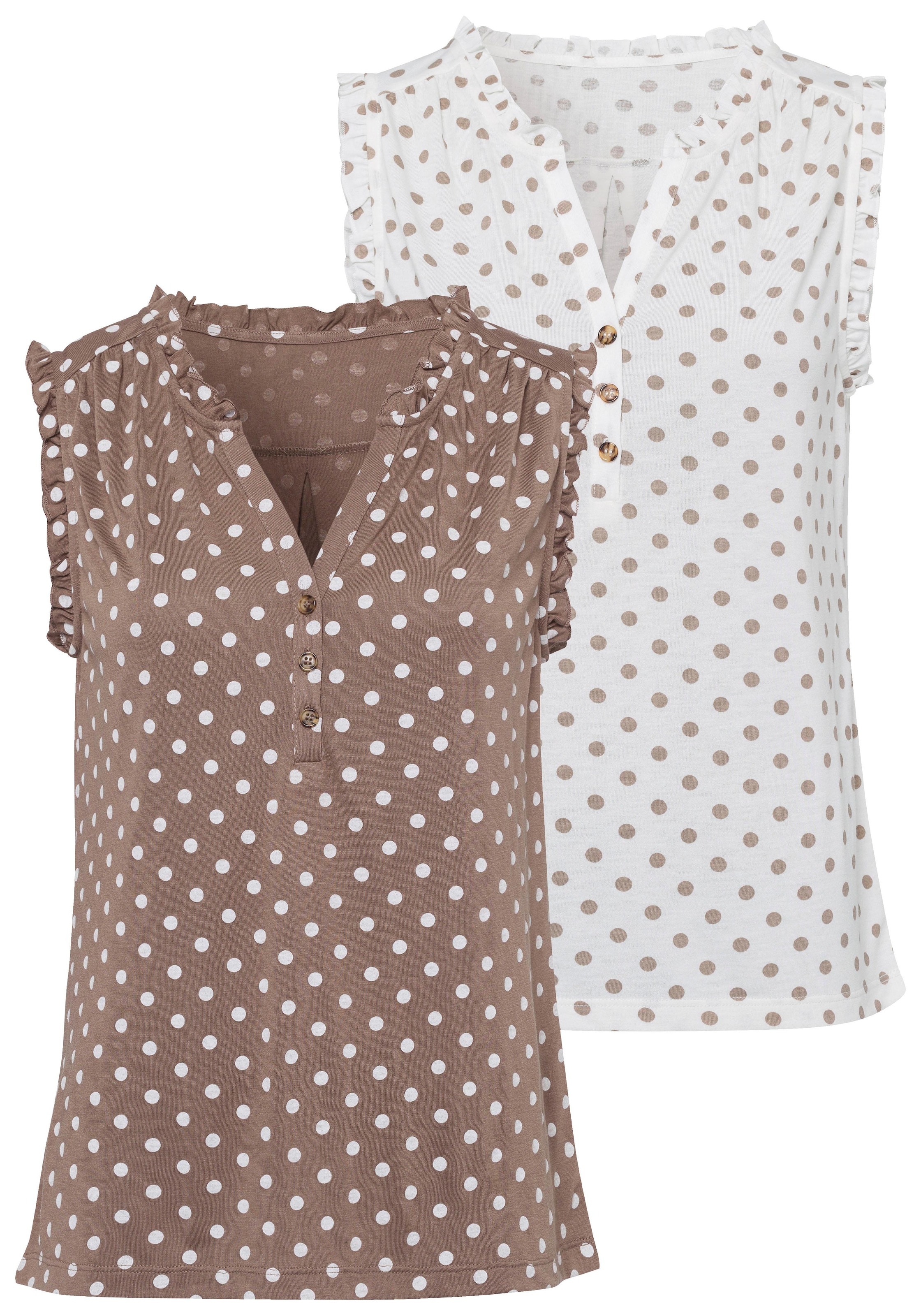 LASCANA Top à volants »mit kurzer Knopfleiste« 2er-Pack, aus pflegeleichter Qualität