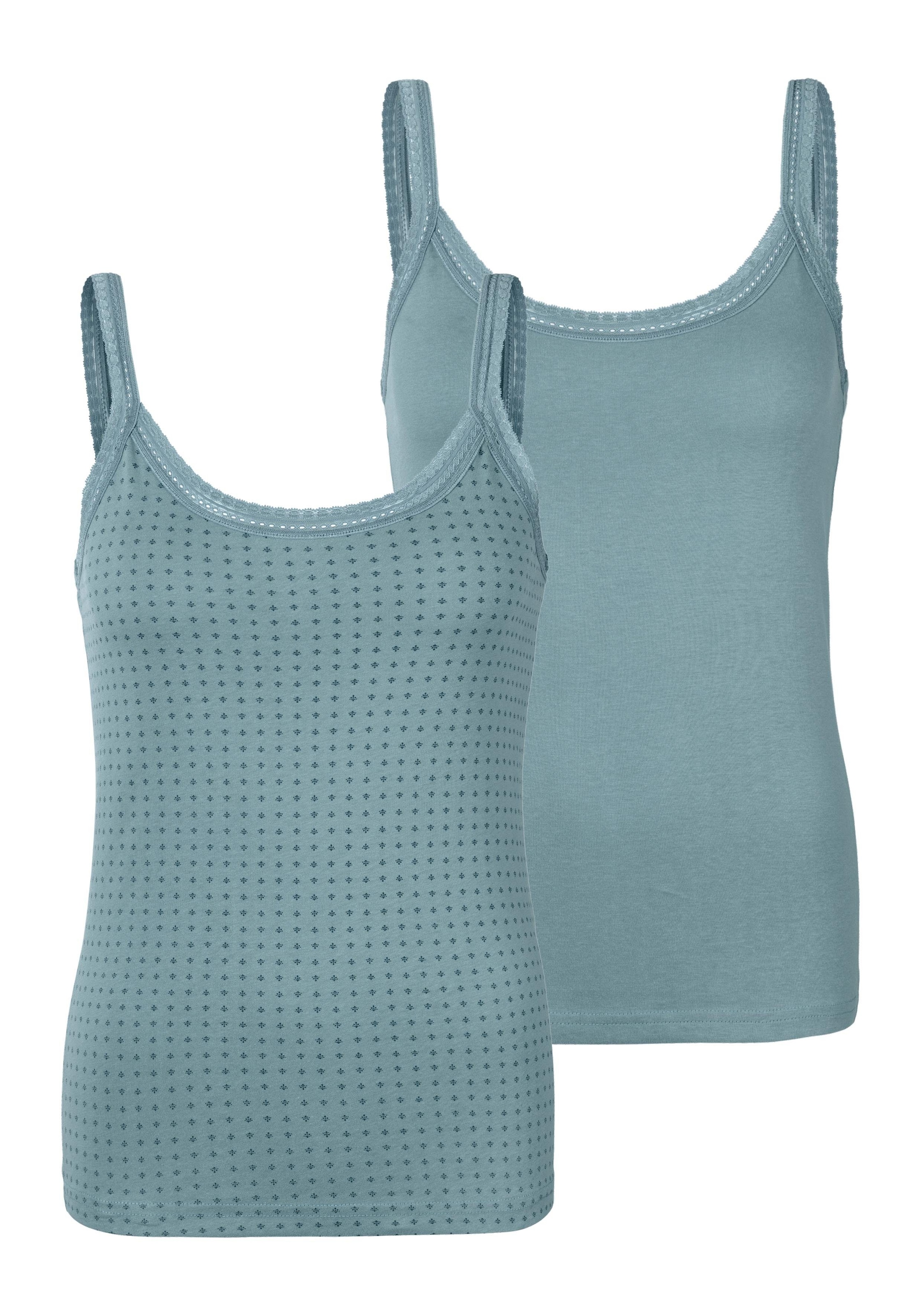 Lascana: Tops im 2er-Pack. Feine Spitze an Ausschnitt und Trägern. Allover bedruckt und uni in einer Packung.