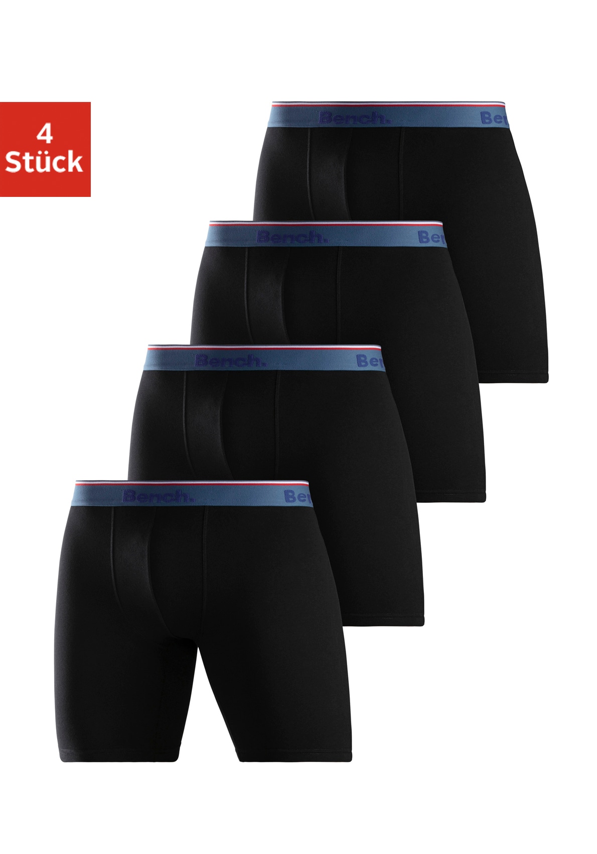 BENCH Herren Boxer im 4er Pack. Mit langem Bein und gestreiftem Logo Bund. Obermaterial: 95% Baumwolle, 5% Elasthan