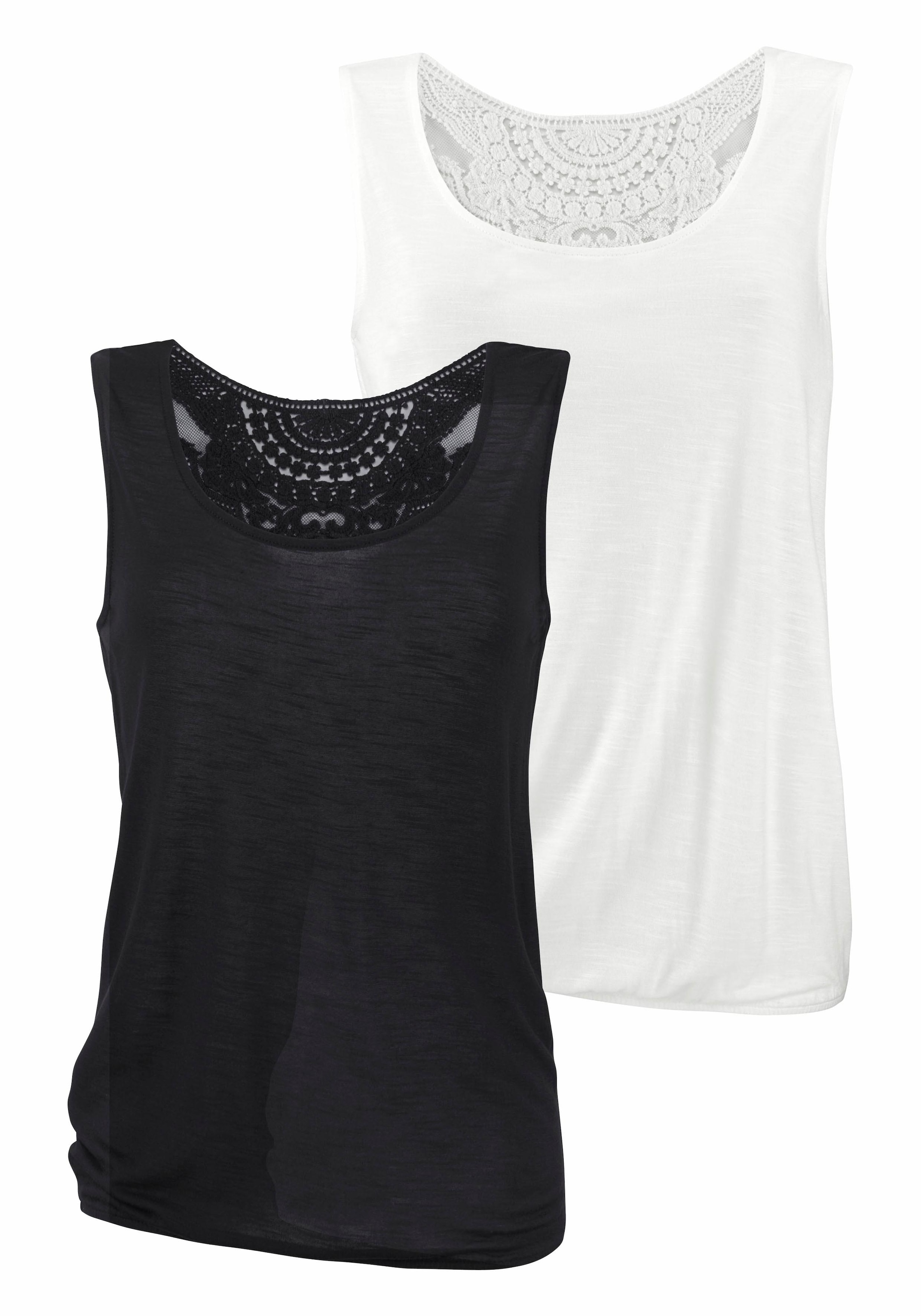 Beachtime Trägertop »mit Spitzeneinsatz am Rücken« 2er-Pack, aus weicher Viskose-Slub-Qualität