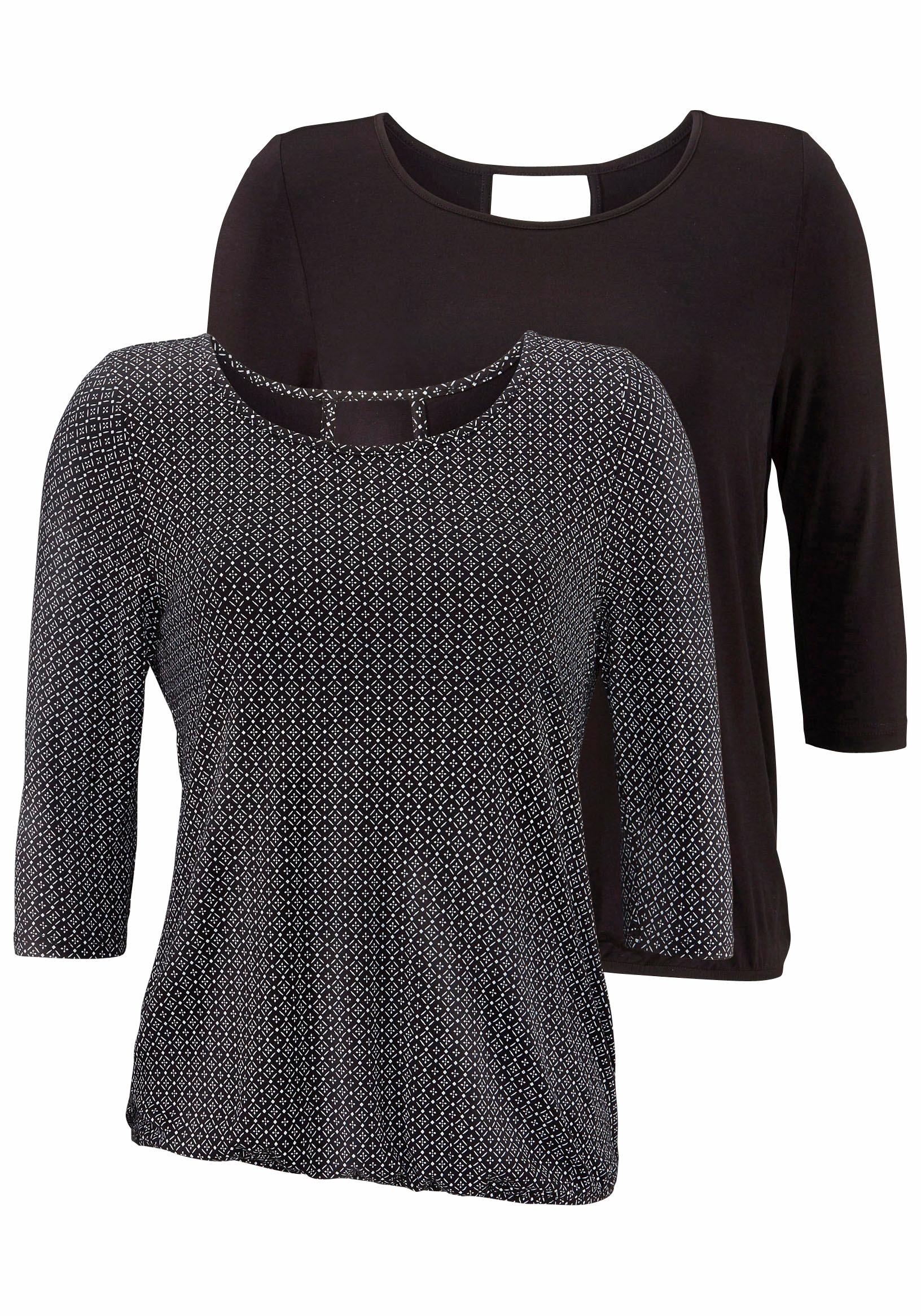 Lascana 3/4-Arm-Shirts im 2er-Pack. Mit Rundhalsausschnitt und V-förmiges Cut-Out im Nacken. Gummizug am Bund für eine lässige Passform. Aus weich fliessender Viskose-Qualität.