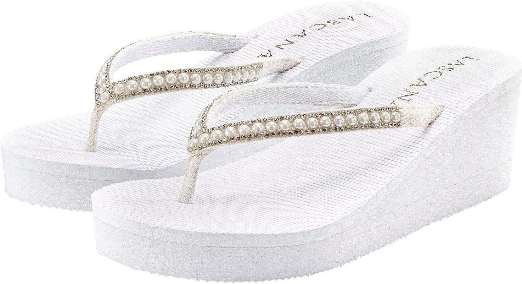 LASCANA Badezehentrenner »Sandale, Pantolette« Badeschuh, Zehentrenner mit Keilabsatz und Perlen VEGAN