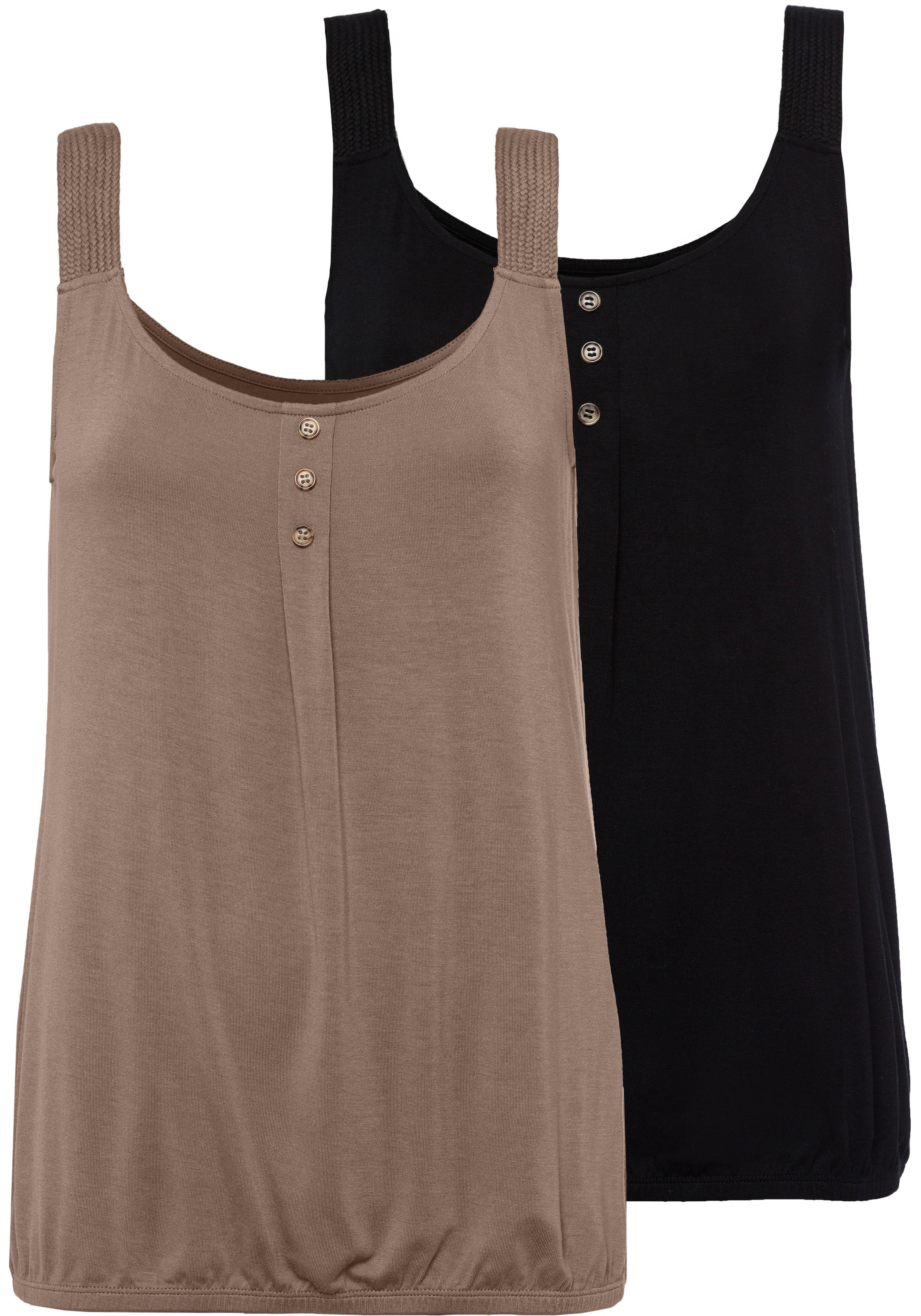 LASCANA Strandtop »mit geflochtenen Trägern« 2er-Pack, aus weichem Viskose-Stretch