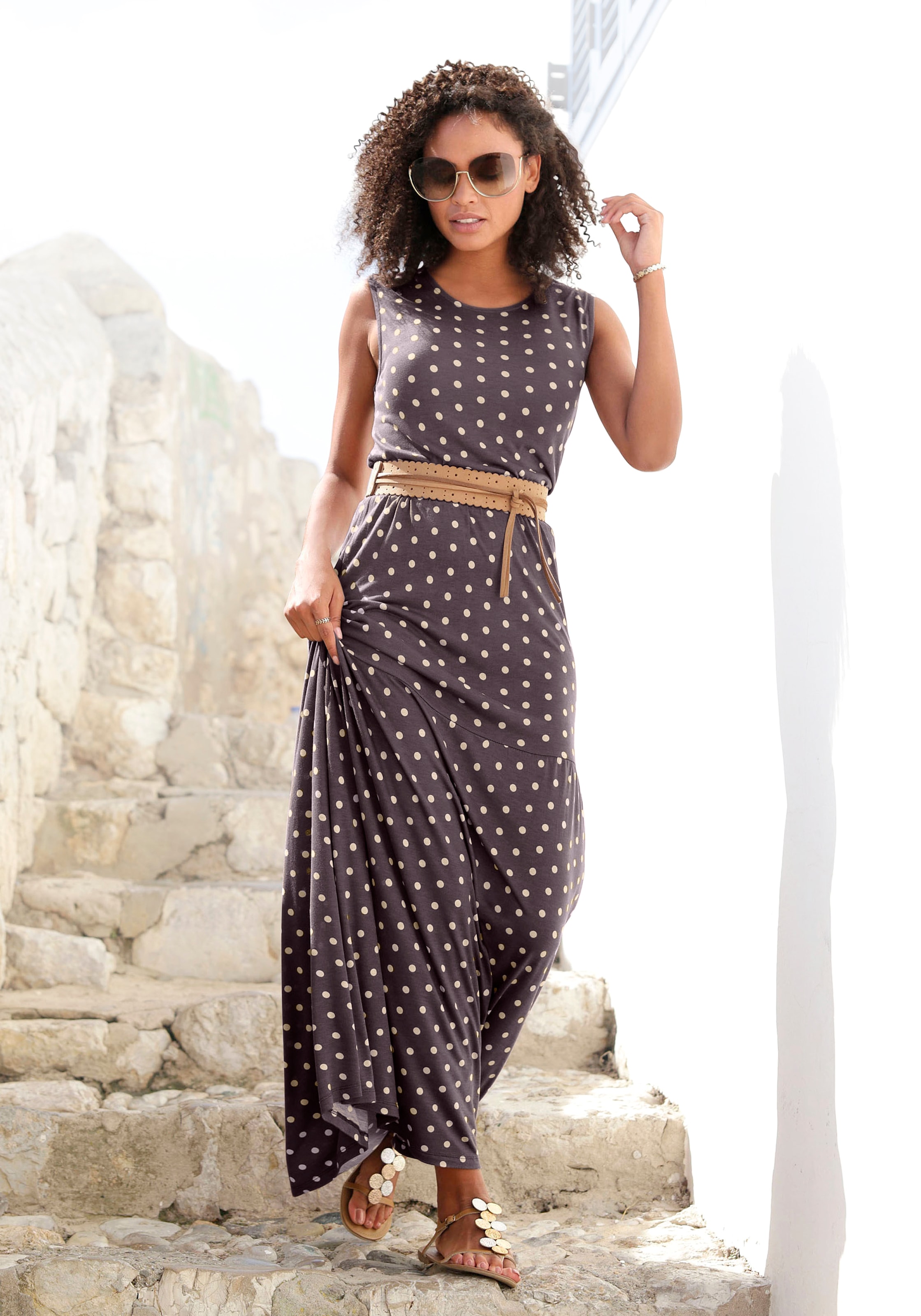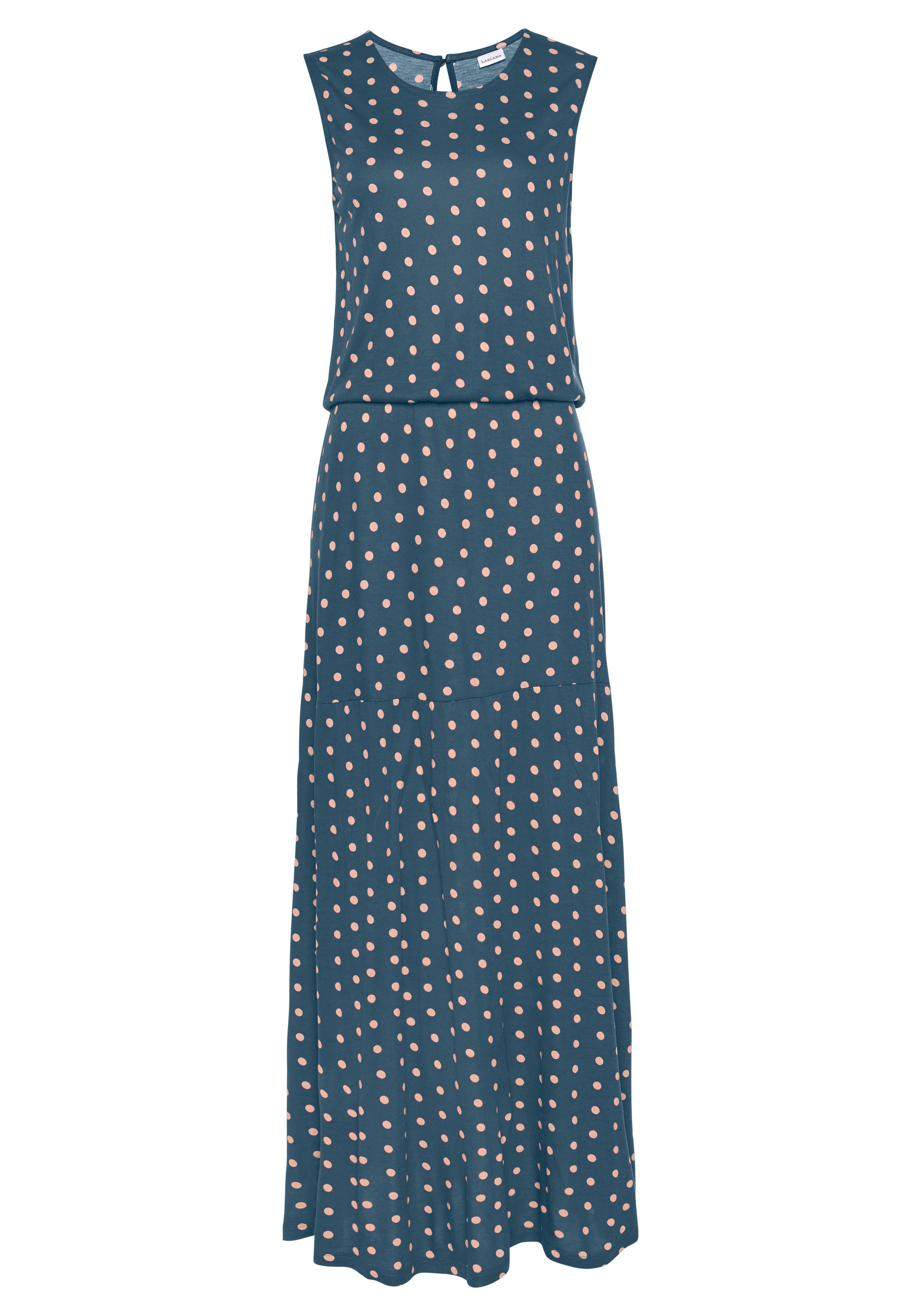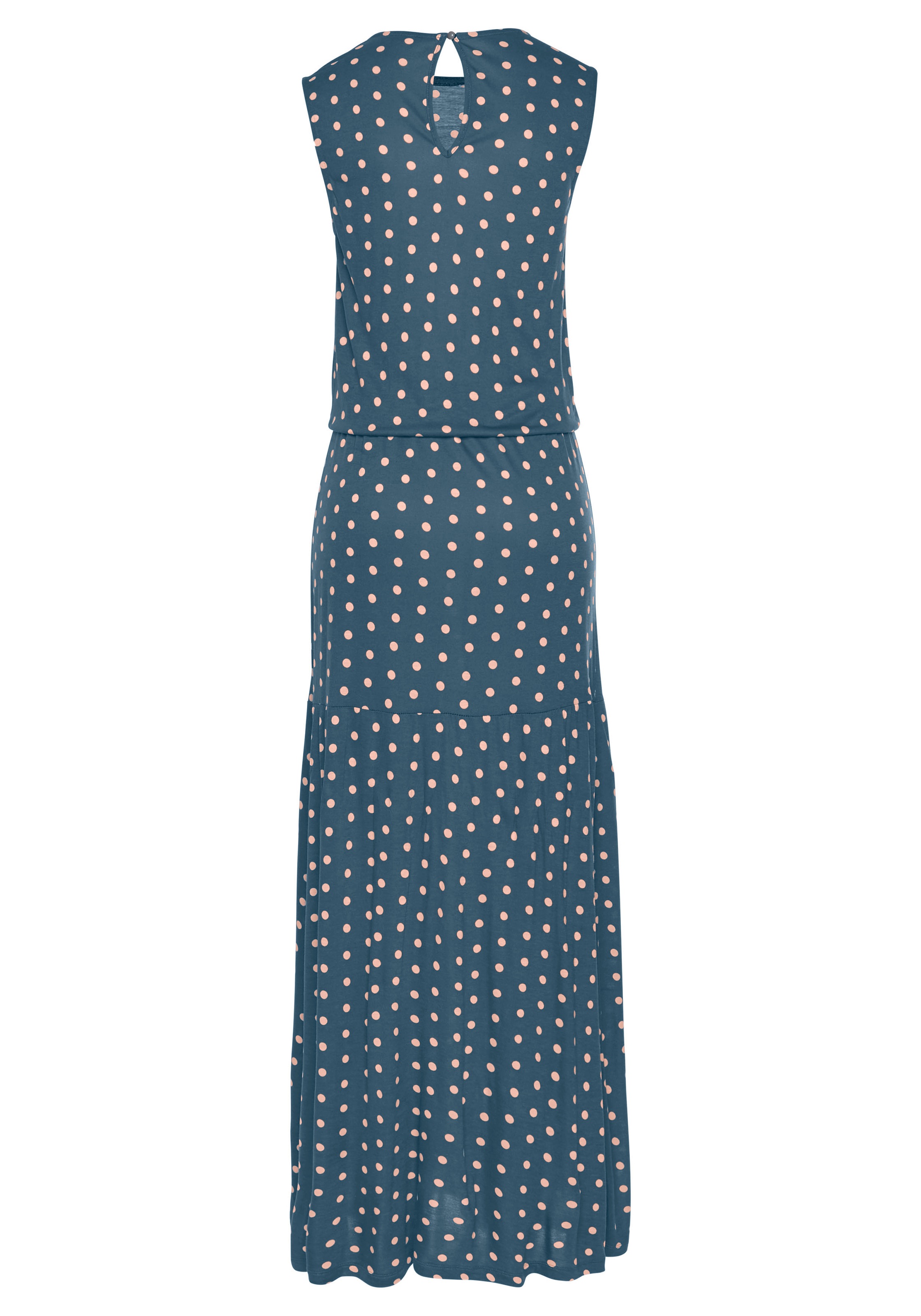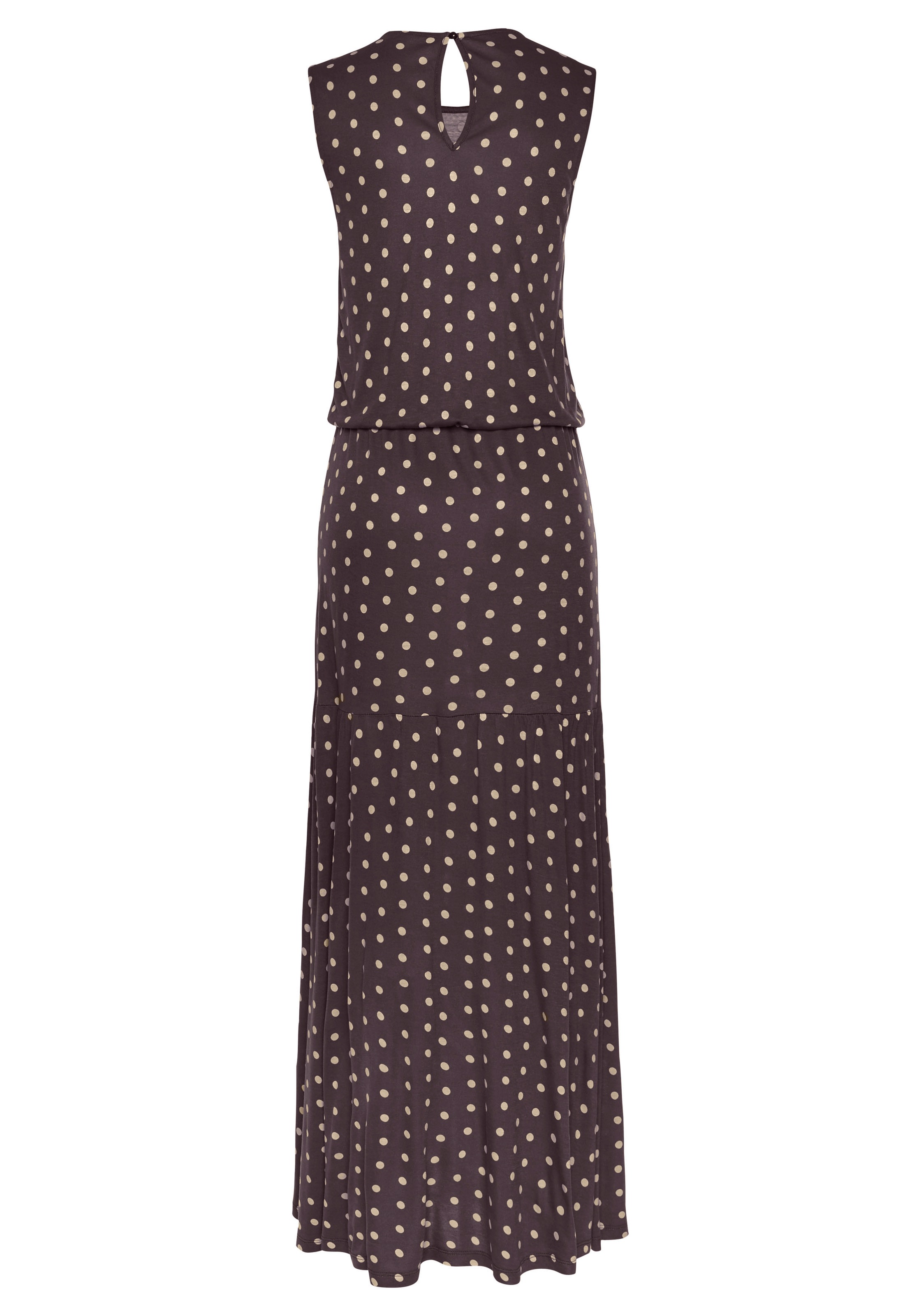 Maxikleid von Lascana im Punktdesign, jedes Teil ein Unikat. Runder Ausschnitt, im Nacken mit Schlitz und Knopfverschluss. Gummizug in Hüfthöhe. Langes, weites Rockteil. Länge ca. xx cm. Aus 100% Viskose.
