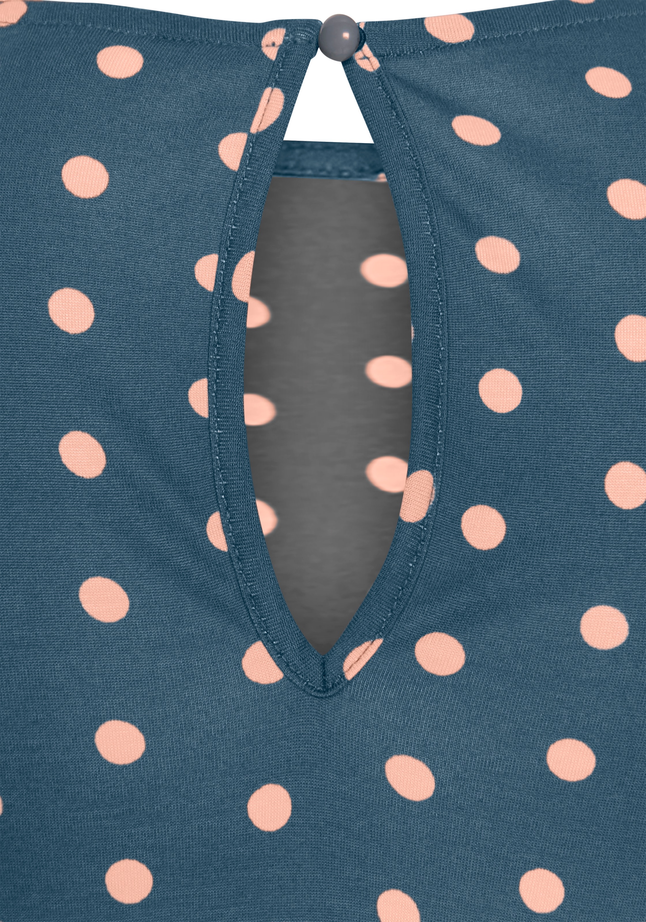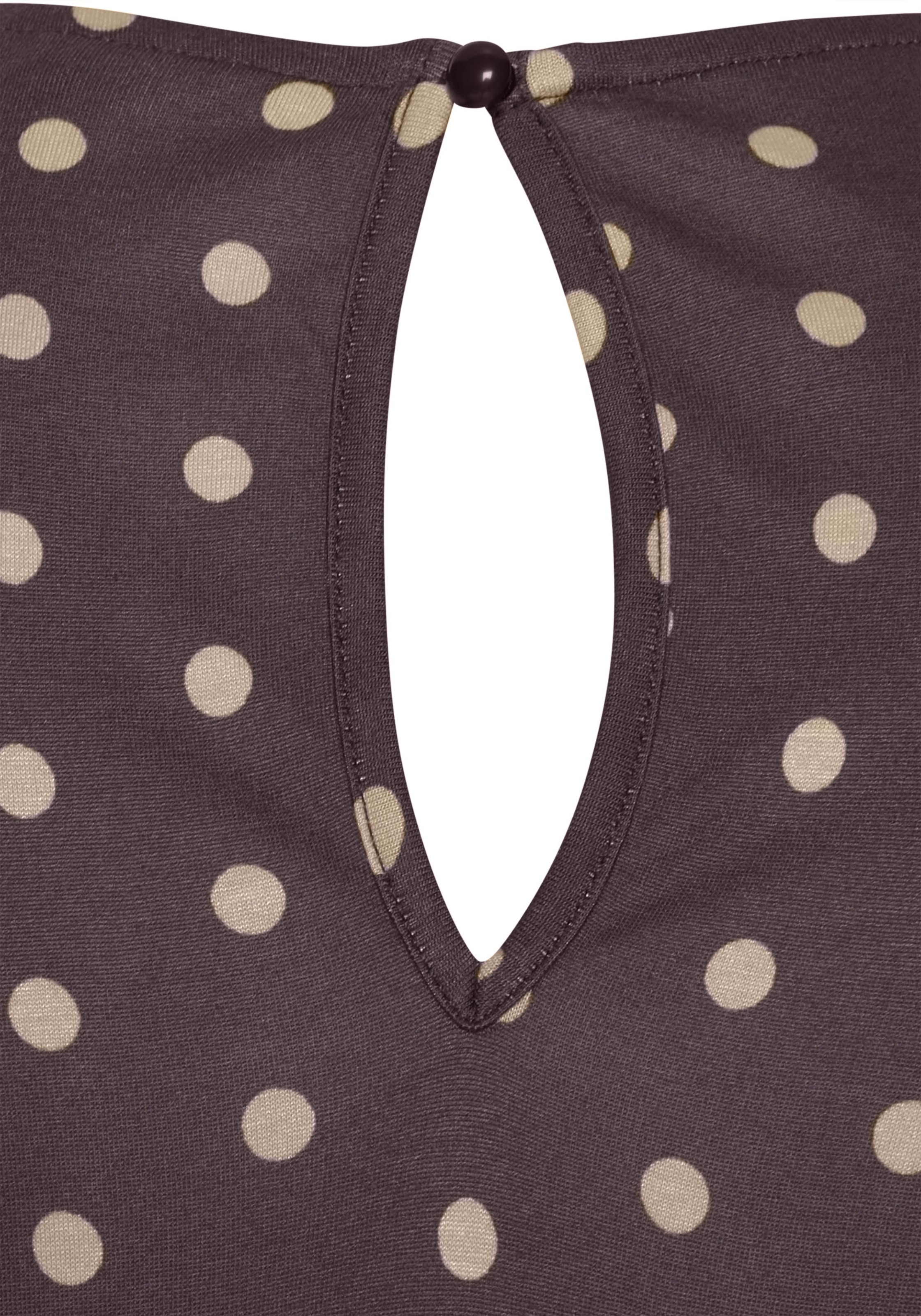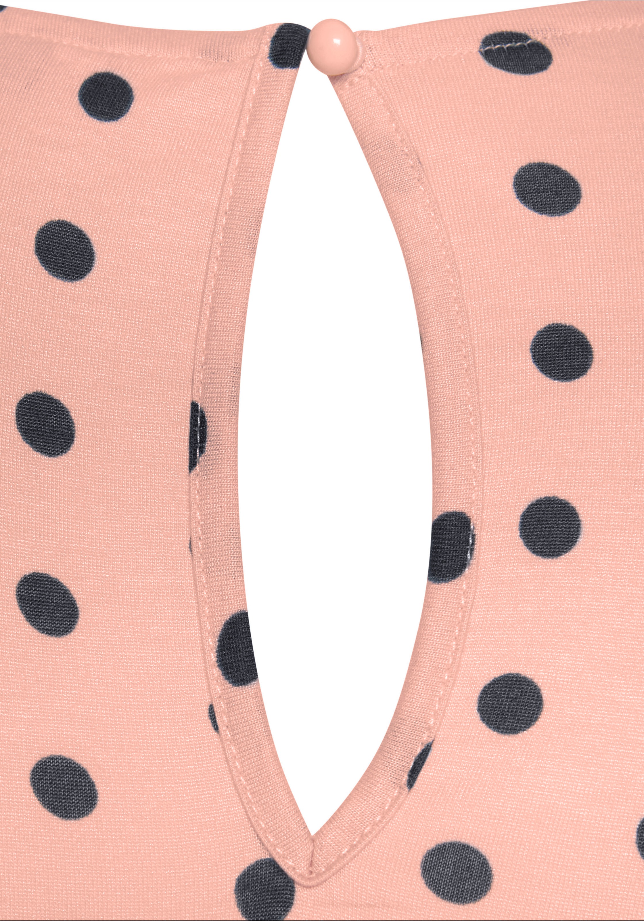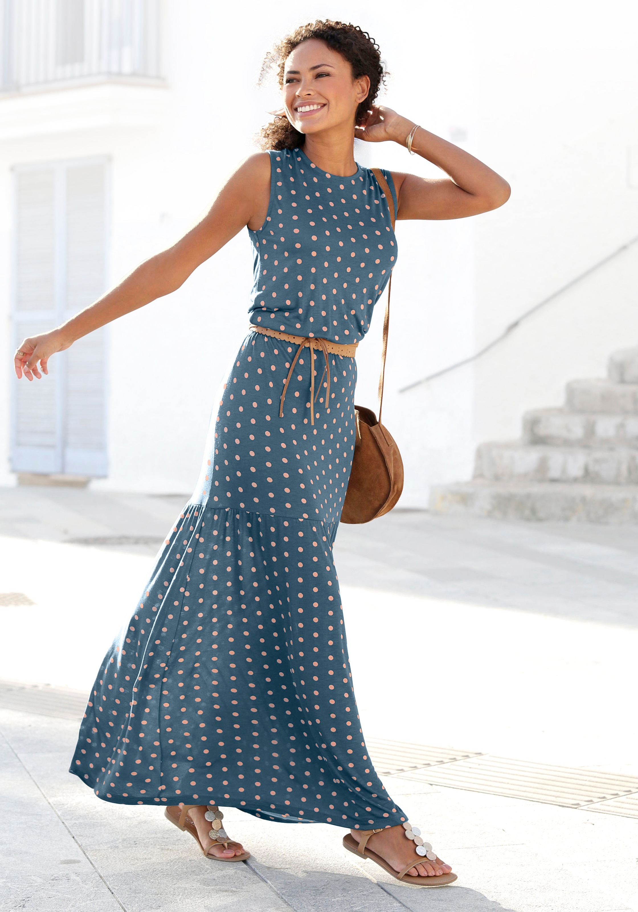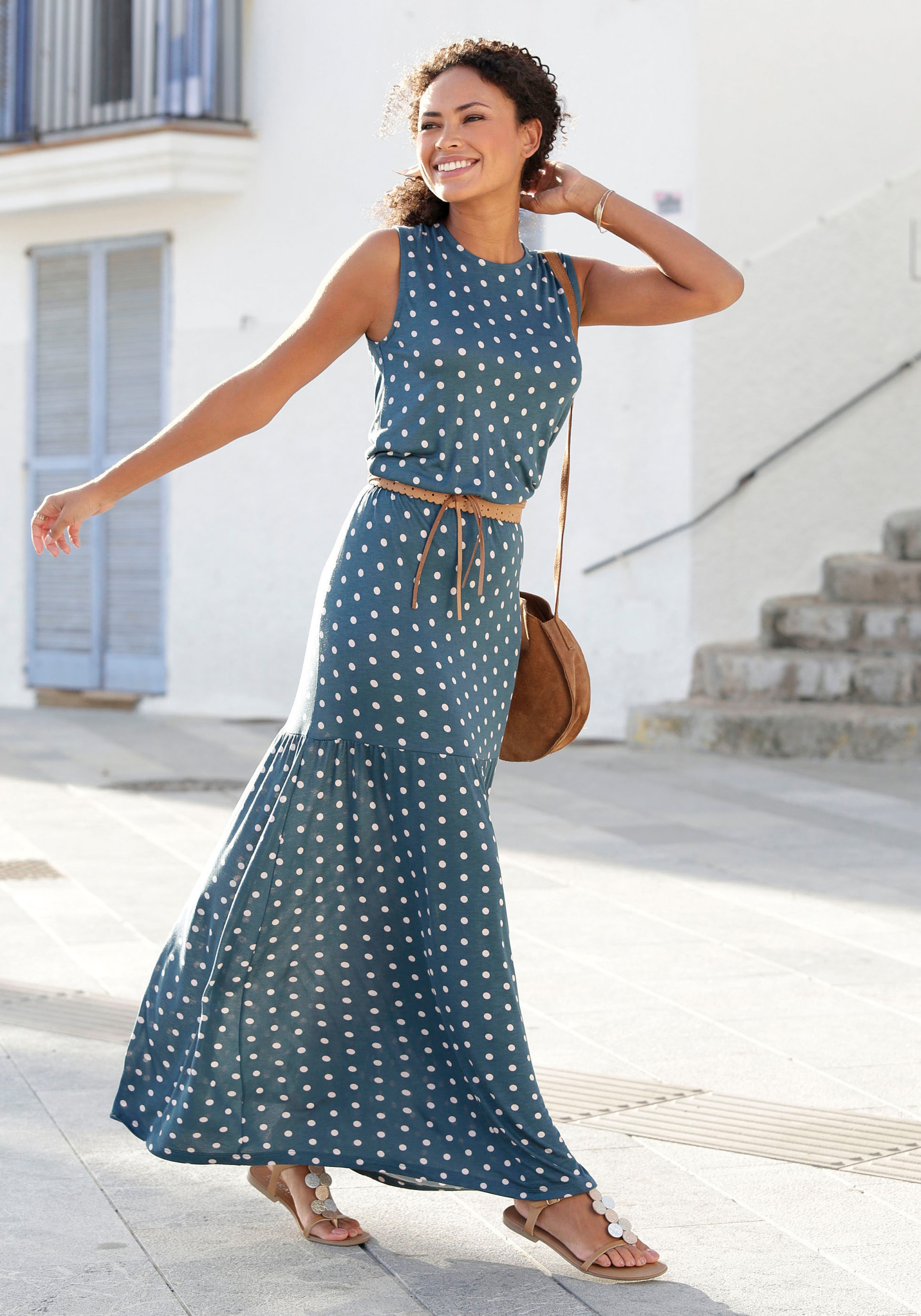 Maxikleid von Lascana im Punktdesign, jedes Teil ein Unikat. Runder Ausschnitt, im Nacken mit Schlitz und Knopfverschluss. Gummizug in Hüfthöhe. Langes, weites Rockteil. Länge ca. xx cm. Aus 100% Viskose.