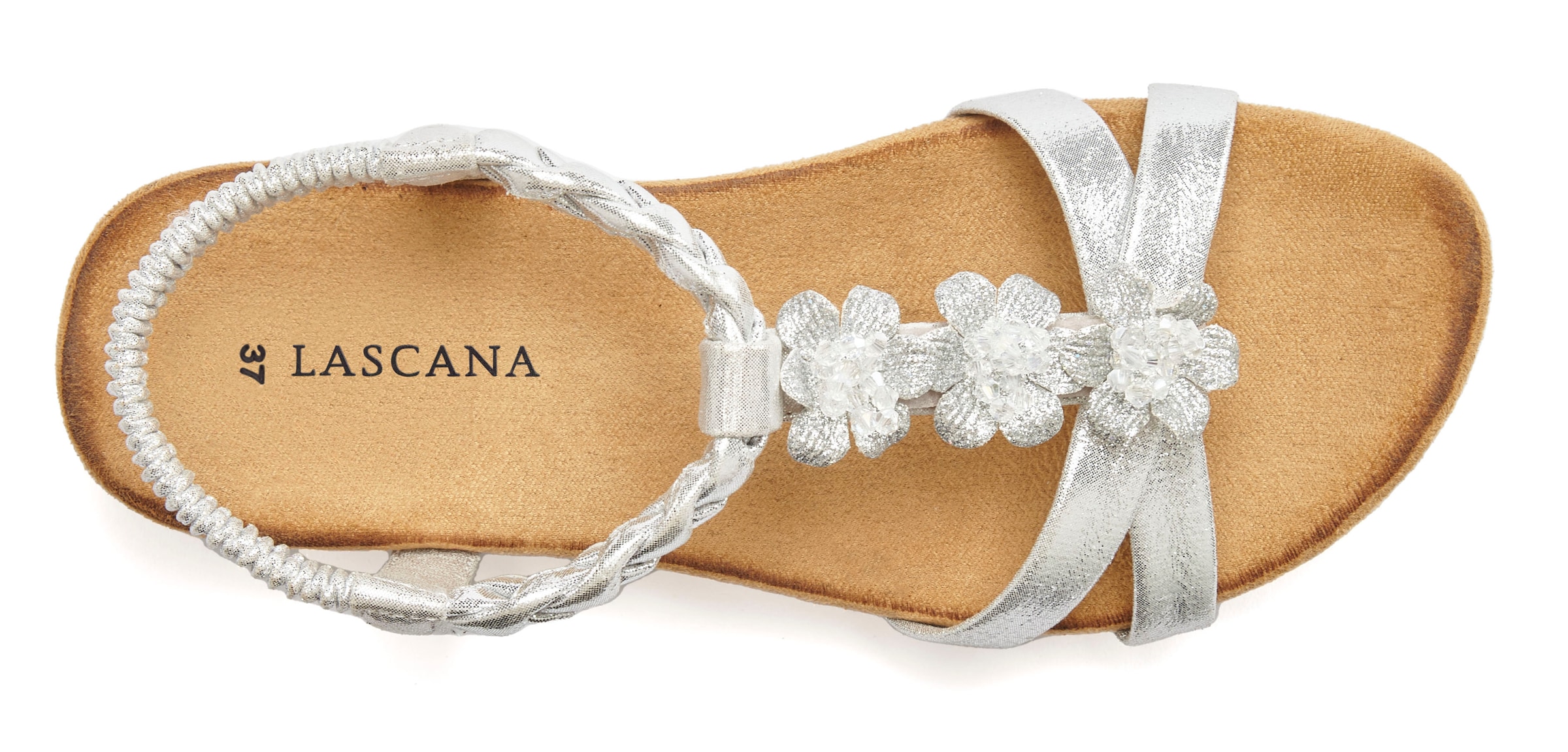 - Sandale »Sommerschuh« Sandalette, Sommerschuh aus Leder mit Steinchen in Glitzer-OptikLASCANAAktueller Preis79.90 CHF
